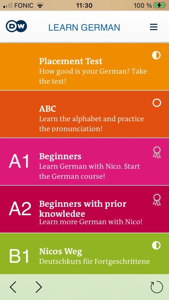 The great thing about Duolingo is that it does turn practicing and learning the language into a game. The DW Learn German program does not do that. DW is based on videos, so for me it feels like I am watching TV and then answering questions about the TV program. I grew up watching tv and films, so this feels easy for me. I didn’t necessarily grow up playing video games, which is also perhaps why I don’t prefer Duolingo.