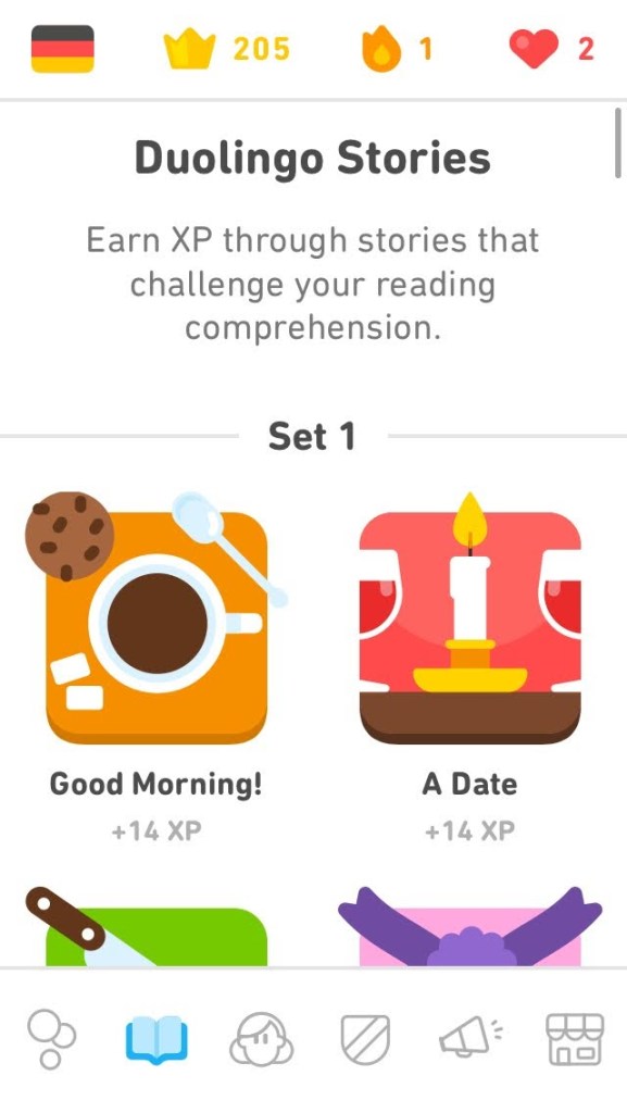 Maybe this last week of March, I will practice again on Duolingo. That way I can also report back on the usefulness of Duolingo’s ‘stories’ feature.